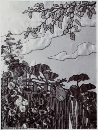 Photograph - embroidered panneau designed by Gizella Mirkovszkyné Greguss (hanging) at the Christmas Exhibition Association of Applied Arts, 1898.