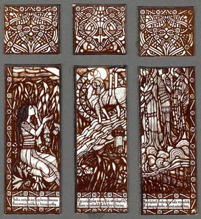 Photograph - Stained glass window with the ballad text of Júlia the Pretty Girl