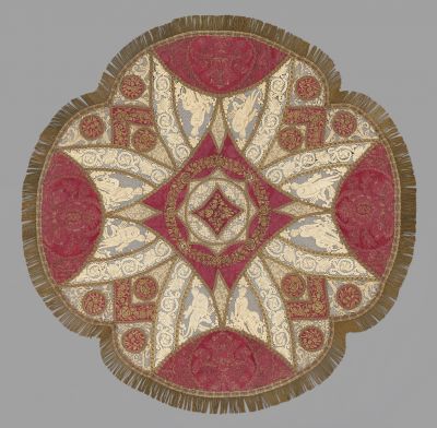 Materials: | metal thread; silk; unbleached linen |