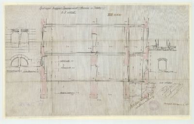 Plan - height proportions of the Üllői street wing related to the street and courtyard pavement, Museum of Applied Arts