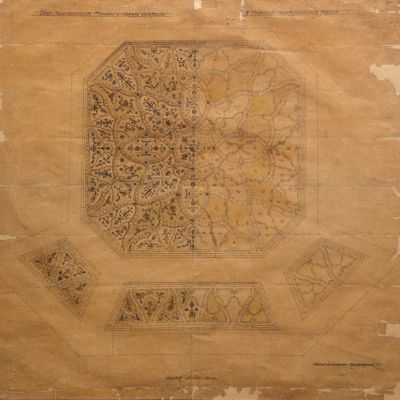 Plan - majolica ceiling of the open entramce hall, Museum of Applied Arts