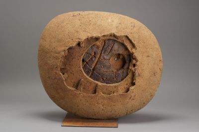 Techniques: | coloured with metal oxides (presumably); hand-shaped |
