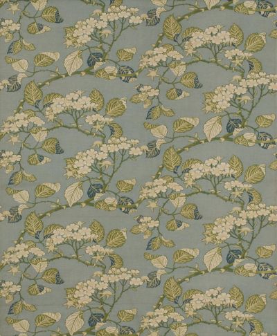 The light blue surface is decorated with diagonal, wavy hedge boughs in white, light green, green and blue.
