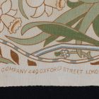 Contoured with dark ochre against a white base, the pattern is printed in light beige, ochre, light blue and two shades of green. The fabric is decorated with parallel vertical areas of thick wavy vines enriched with lilies-of-the-valley. There are narcissus stems and forget-me-not boughs springing from the vines that are embraced by tulips with curved stems and huge blossoms. Further copies and colour variants can be found in the Victoria and Albert Museum in London, in the Textilmuseum of Krefeld (see Cat. 1977b No. 4 - which is there - erroneously - regarded to be the last design of William Morris). The original pattern drawing and the wooden blocks are now in the William Morris Gallery, Walthamstow.