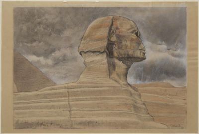 Drawing - Sphinx of Giza, backstage the piramyd (side view)