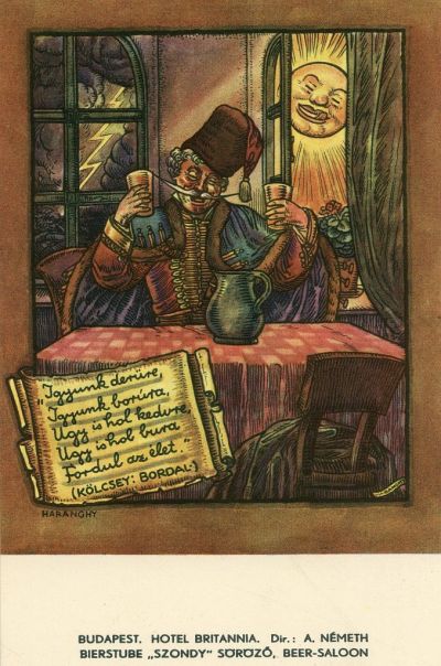 Reklám képeslap - Hotel Britannia, Budapest, Bierstube „ Szondy” Beer-Saloon
