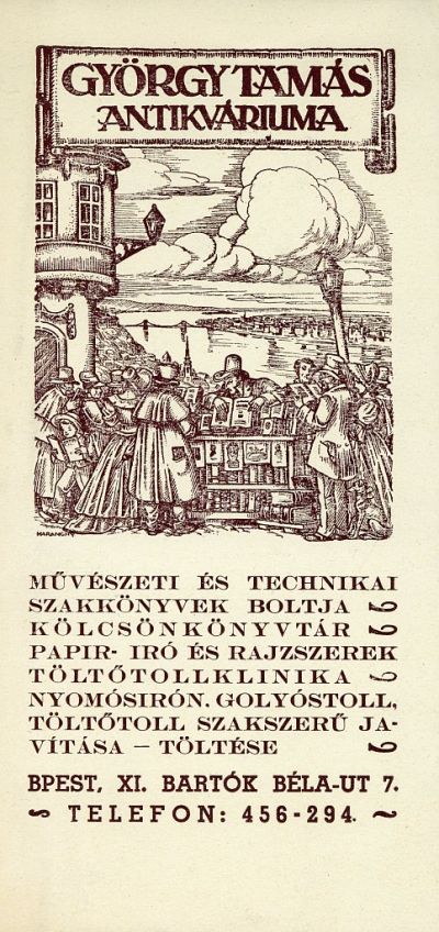 Reklámcédula - The antiquarian bookshop of Tamás György