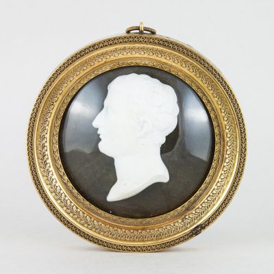 A round relief, which shows the idealised portrait of the French emperor in profile, surrounded by a framework of oak leaves and laurel wreaths.