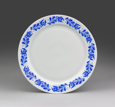 Round dish (large, part of a set) - Part of the Krisztina-202 tableware set with blue Hungarian style pattern