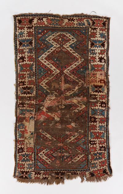 Techniques: | Ghiordes (symmetrical or Turkish) knots (presumably); knotted |