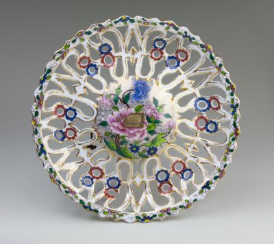 Techniques: | cast in mould/slip-cast; painted in polychrome overglaze; pierced decoration |