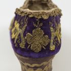 | Materials: | gold coloured metal yarn; leather; linen; velvet |