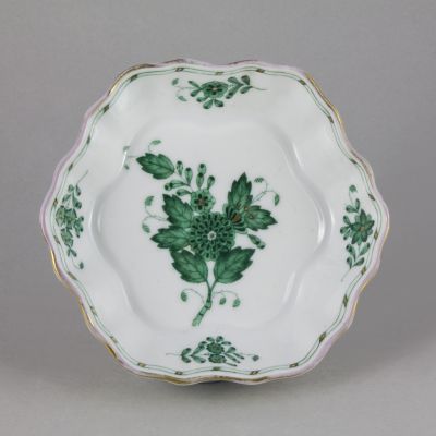 Inscription: | alján masszába nyomva: Herend; kékkel festett gyári jegy (koronás magyar címer) |