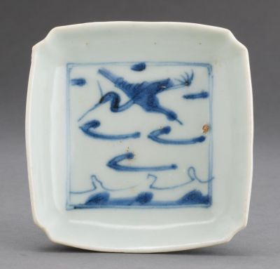 Small rectangular dish - With flying crane above waves in the well (from an unidentified shipwreck cargo)