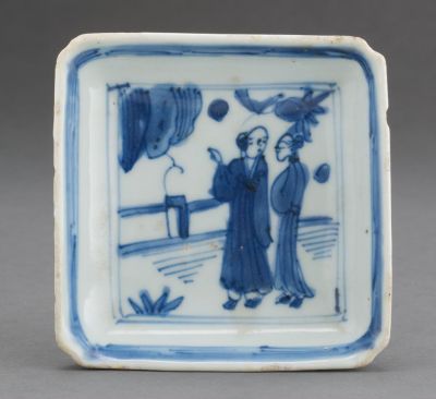 Small rectangular dish - With the figure of a walking woman and a man in the well (from an unidentified shipwreck cargo)