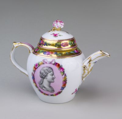 Small teapot with lid - Decorated with polychrome flowers and classicising portraits painted in grisaille