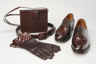 Materials: | cowhide; goatskin; magnet; silk; snake skin |