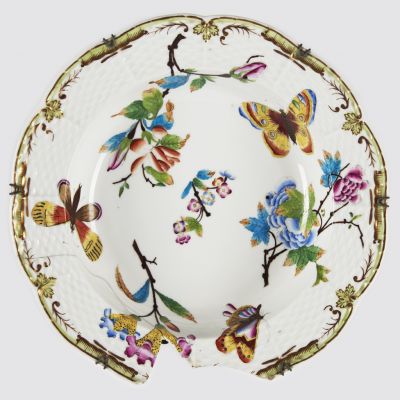 Inscription: | alján benyomott HEREND felirat és koronás magyar címer; kékkel: 1861 |