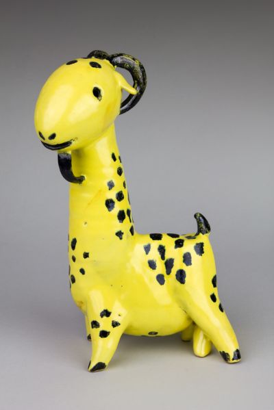 Techniques: | assembled from thrown parts; hand-shaped elements; yellow glaze |