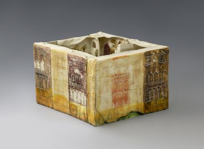 Techniques: | coloured with metal oxides; engraved decoration; high-fired; slab built |