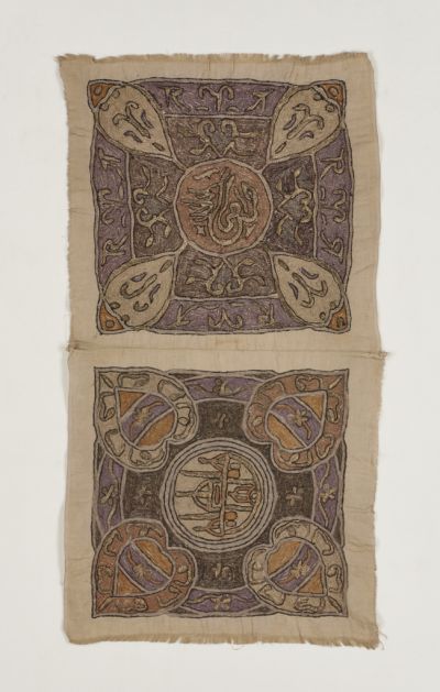 Materials: | coloured silk yarn; cotton canvas (calico) |