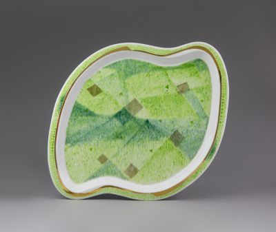 Inscription: | a perem alsó részén kékkel kézzel festett Kádasi Éva 1997, arannyal DESIGNED & MADE BY ÉVA KÁDASI 1997 50/19 |