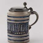 | Techniques: | moulded decoration; painted in blue; salt glazed |