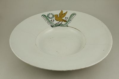 Techniques: | polychrome, paint melting into the glaze; thrown; tin-glazed |