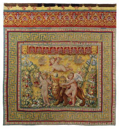 Tapestry - so called Medici tapestry - Playing putti III (putti with lion)