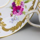 Tea cup and saucer - decorated with painted flower bouquets and relief-gild