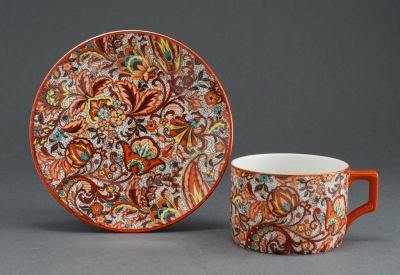 Techniques: | cast; handpainted; pre-printed transfer contours; with decalcomania over glaze |