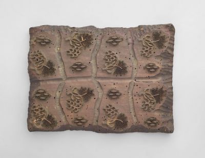 Techniques: | hammered with nails; relief carving |
