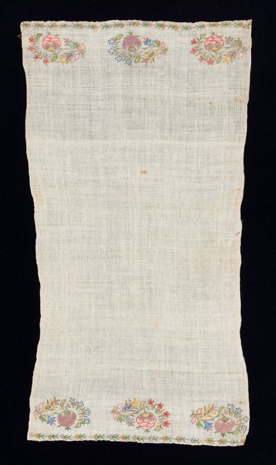 Materials: | hand-woven fabric; metal thread; silk yarn |