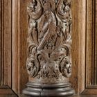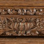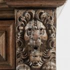 With the Union of Utrecht (1579), Holland to all intents and purposes split from Flanders. The seven Northern provinces chose William of Orange (1533–1584) as their governor. In 1609, Holland achieved its independence, in 1648 winning recognition of that independence and setting out on the road to modernisation. By means of its trade, it became Europe’s leading maritime and financial power. Amsterdam soon took over from Antwerp the leading role in the direction of artistic life. In contrast to Flemish aristocratic luxury furniture, Dutch furniture was simpler, plainer and more middle class. In Holland attachment to traditional, old furniture types was strong. Chests were favoured, as were low and two-level cabinets, sideboards and versions of these. The fine example of the four-door, two-level cabinet preserved in Budapest according most of all with the requirements of a middle-class home is carved from hard oak. On its front side we can discover an entire storehouse of motifs of the Dutch late Renaissance inclining to the baroque: birds hiding among tangled creeper, vases of flowers conveying the atmosphere of still lifes, bunches of grapes concealed among leafy stalks, horn-blowing tritons standing on seashells, animal claws, and heads of lions with thick manes on projecting brackets. We encounter this two-level, four-door type of cabinet in many museums in Germany, e.g. in Weimar, but also in the one-time castle of the Palffy counts at Voroskő castle (today Červeny Kameň, Furniture Museum of East Slovakia).