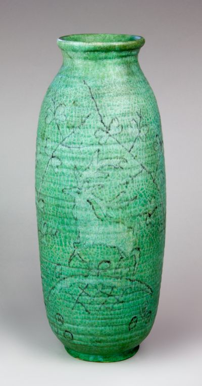 Techniques: | cracked/craquele glaze; painted with polychrome glazes; thrown |