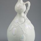 The top rim of the gourd-shaped vase is slightly splayed. The rich, impressed decoration consists of the following motifs: a lizard, a plum bough with leaves and fruits. The stem of the bough rises high then curves back in a handle-shape.