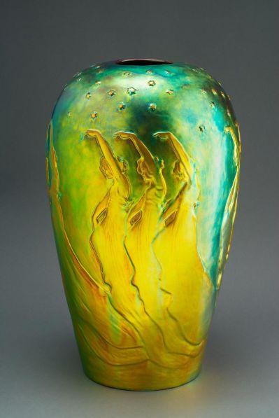Techniques: | eosin-glazed over acid-etched base glaze; pressed in mould |