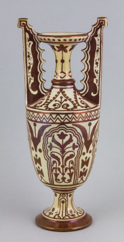 Techniques: | copper lustre painting; thrown; tin-glazed |