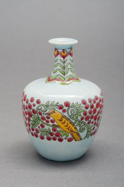Small vase - With bird pecking berries