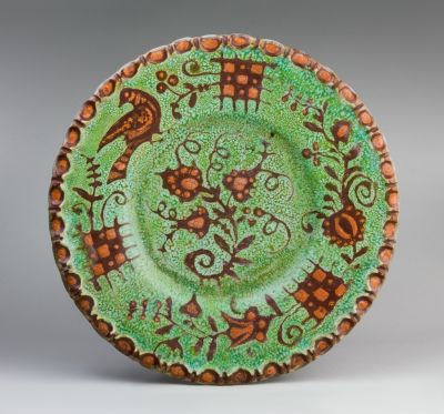 Techniques: | painted with polychrome glazes; thrown |