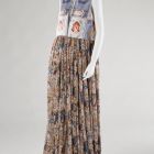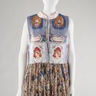The "Women’s Emancipation" dress was created as part of the exhibition series In Circulation, launched by the Contemporary Design Department in 2018. According to the concept, the invited designer will select an object or ensemble of objects from the collection of the Museum of Applied Arts, and will create a new design as inspired by the object(s). Our fifth invited artist in the series is Romani Design founded by Erika Varga and Helena Varga in 2010. The sisters chose a total of six art objects from the collections of the museum. It is not by chance that these are all devotional pictures depicting either the Virgin Mary or other female saints, which provided the inspiration for the designers to create six enchantingly richly patterned women’s garments and coordinated accessories (see also 2021.515.1.